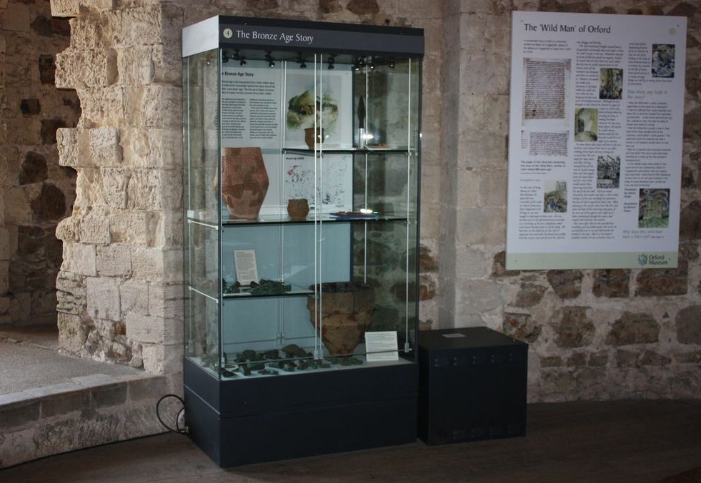 The display features part of the regalia of the former Borough and items relating to the archaeology and social history of Orford and the surrounding area. It includes a remarkable collection of Bronze Age artefacts found at Butley and on loan from the Colchester and Ipswich Museum Service, material from Orford Ness and from the lighthouse which will soon be washed into the sea.